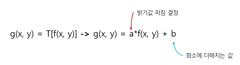 밝기값이 어떻게 퍼지는지 결정하는 a와 화소에 더해지는 b값을 활용한다.