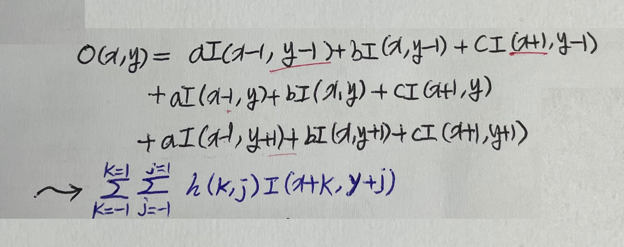 중심 화소의 값을 인접 화소들의 가중합으로 대체하는 연산이다.
